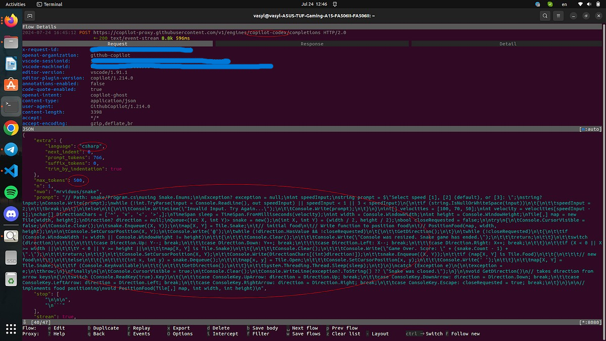 To gain deeper insights, we’ll use a MITM (man-in-the-middle) proxy to intercept and analyze the requests and responses between VSCode and GitHub Copilot.